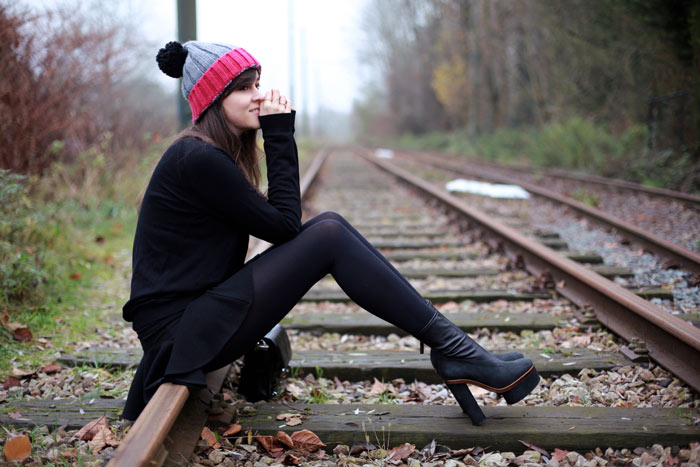 cooooool pic. your dress rocks. beautiful dressing. most intresting is the location you choose to take pic, a railway track…huh its really cool idea. black color suits you well.