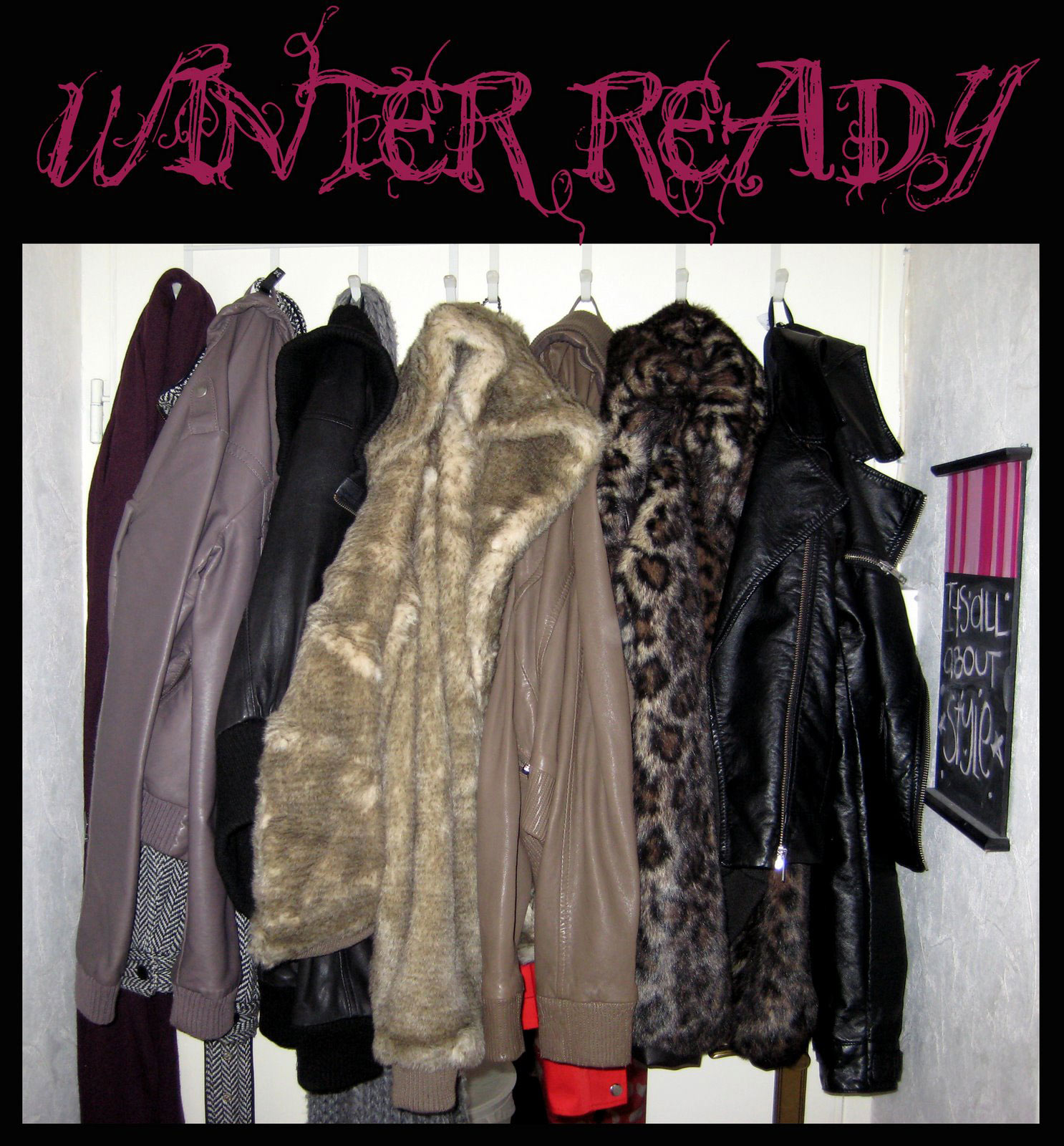 This are some of the coats and jackets hanging at the back of my door, problem is tho that the door isnt opening anymore so everytime I get in or out, the door bounces back and hits me in the elbow (every time) you would have thought that I would be aware by now, but I keep forgetting!!! yeah, my elbow is sore lol…