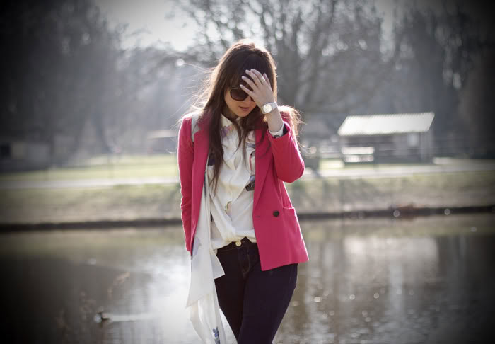 14. Aww!!! Love your pink blazer!!! And the blouse! Your outfit is so cute :D I just bought a pink blazer, too… well, but more soft pink ^^