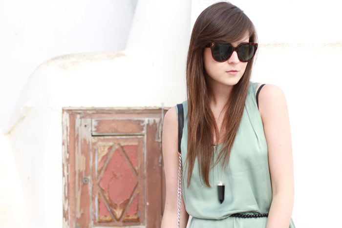 really mediterranean outfit with the sea green dress, the sunnies are very cool too! singinonmymind.blogspot.com
