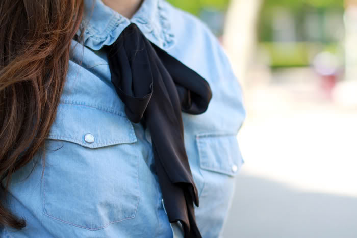 Me encantó la lazada al cuello en la camisa vaquera!!un efecto muy naif.