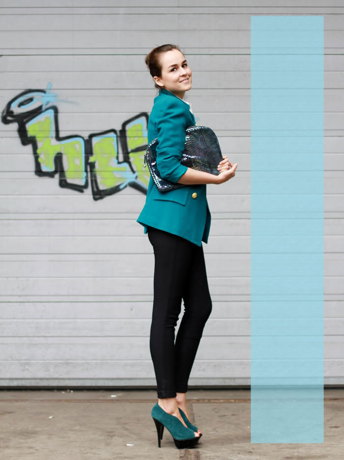 You really look gorgeous. I love the couple blazer+shoes, the turquoise color is very beautiful and shining.Sara Ottavia C.