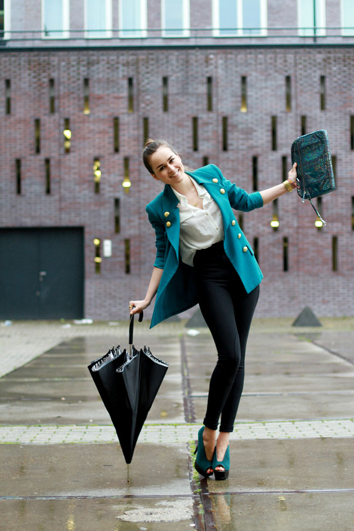 Oh adorable shoes/bag/umbrella/coat! Love this look! Seriously that blazer is so freshhh :)cheers,–Megan//The Martian Tide
