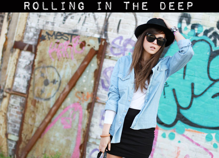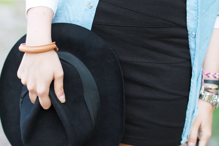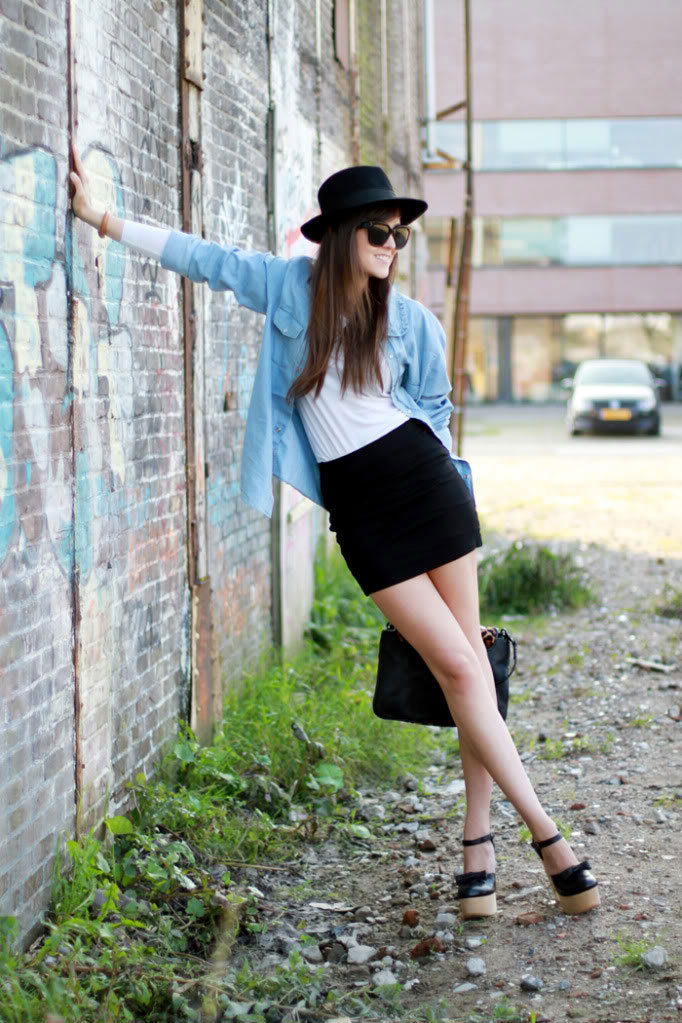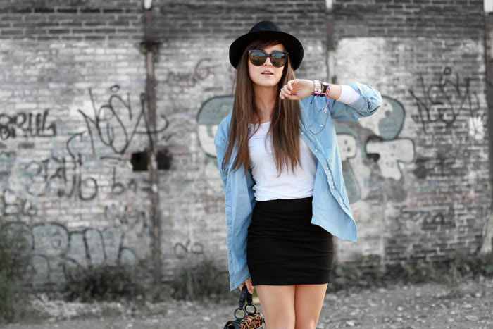Gorgeous outfit! Really love a black skirt with denim. And the hat gives it a great touch!xxx