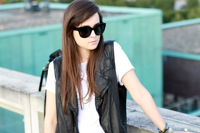 Skirt: Urban Outfitters / Tee: COS / Leather vest: WGACA NY / boots: ACNE / Necklace: Serenitydesigns.nl