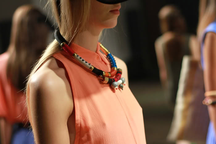 I Love every thing I saw in these photos I love bright neon colors, this salmon, apricoty tops , the necklaces and bracelets are great reminds me Proenza…eh eh http://www.desperatelyseekingpegase.com
