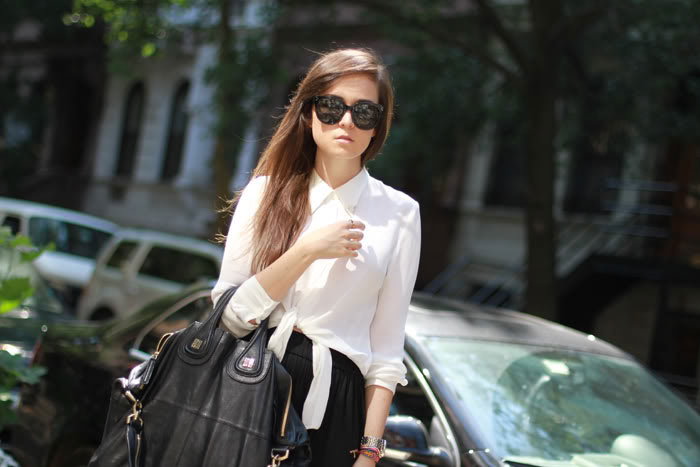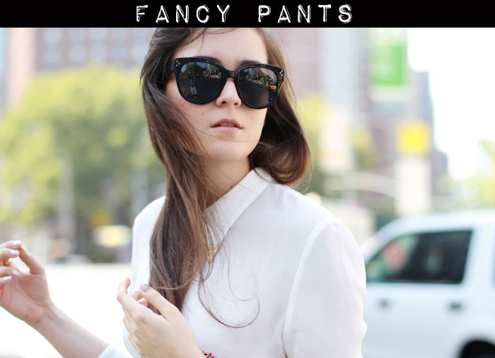 I have to admit I am not sooo fond of these pants, especially as they get narrower at the bottom… but I really Iike your blouse and of course the sunnies! Love them sooooo much and looking for them since ages… they are from Celine are they?♥ XOXO TheFashionBambi ♥www.TheFashionBambi.com