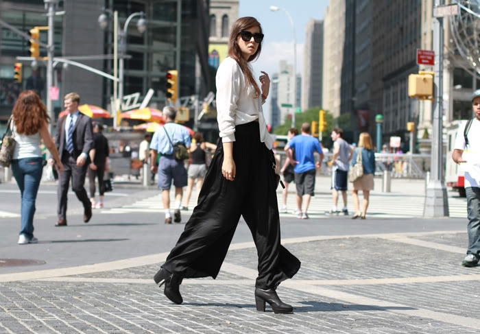 I really love these kind of wide pants!! I have one pair in terracotta, an other in trasparent black polka dots and the last is liberty. It so great to walk and to see our pants "flying"!! hahaha! and these are the perfect pants for a simply and elegant silouhette! have an amazing day beauty!xoxo from france