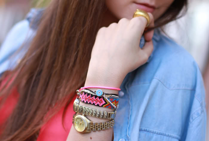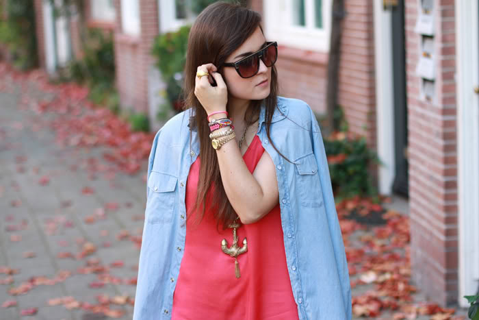 You look fantastic! I've just recently bought similar denim shirt, and i love it! You gave me an inspiration how i can style it with :) I got a bit concerned, when i saw the first photo and your bare legs, i thought "now, see will get sick again :/", watchout for yourself, darling, don't get cold! We all wish the best health! Kisses!SandraEnter my first jewelry giveaway ever!! :)