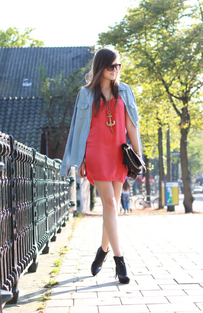 I love this look soooo much, Andy! Everything is perfect – your jean's shirt, your dress and boots, the background! awwxx Leila Bellahttp://leilabellz.blogspot.com