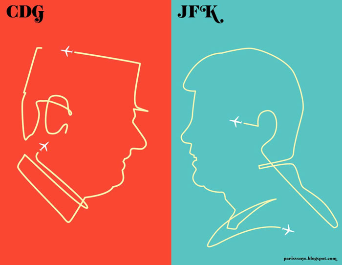 Oh la la, I think I have been obsessed with Paris ever since I was a petite fille (picture a 2 meter poster of the eiffel tower in my living room), in fact I always dreamt of moving there one day…I have been to Paris many many times, I still love it and I always will but lately, its NY who’s really calling my name and as I am heading there on Monday for a 3 day trip, I thought  it would be fun to share with you some illustrations I found on Paris vs NYC by Vahram Muratyan…How awesome and spot on are they?