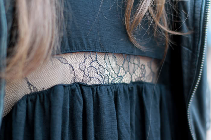 Me encanta el detalle del encaje en el vestido. La chupa le da un aire agresivo a este little black dress!http://www.laflorinata.com
