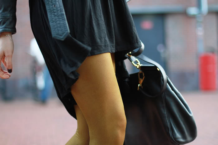 I'm not sure about the tights. Somehow they manage to look both great and funny. :) But I loved your leather jacket since I first spotted it on your blog ages ago!trousersshoesandskirts.blogspot.com