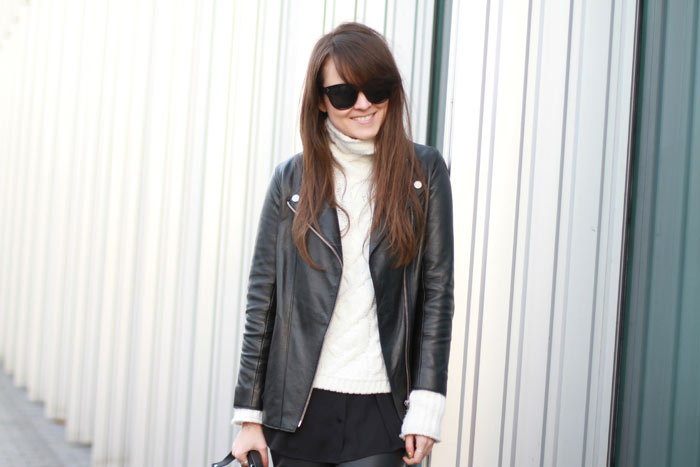 Beautiful black and white outfit, love the contrast between the chuncky sweater and the black leather!www.inspirationofshhh.blogspot.com