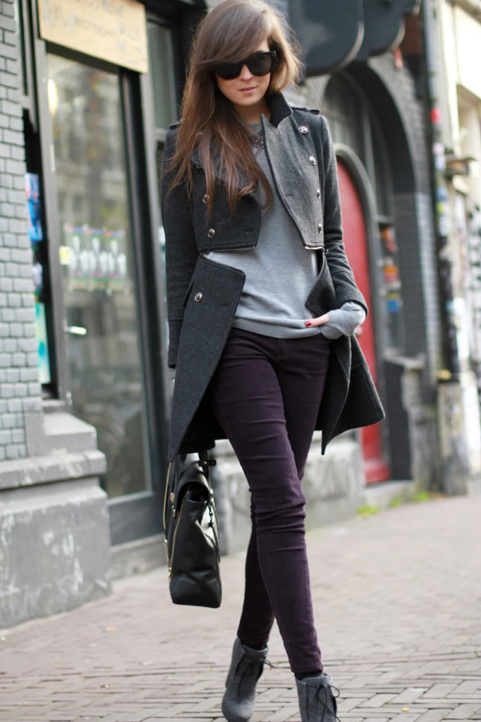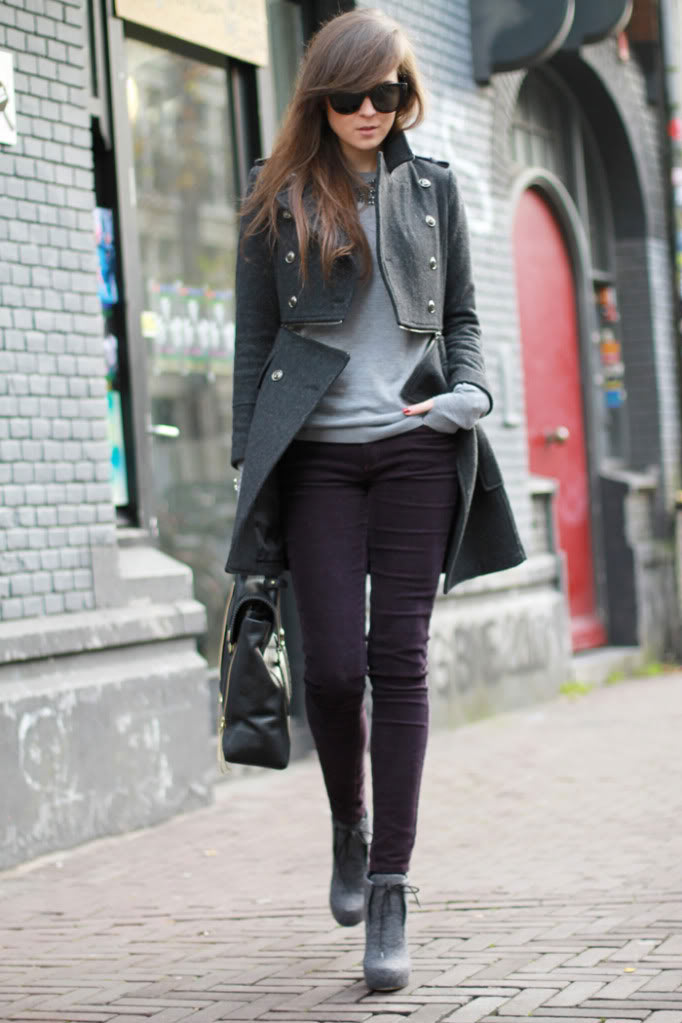the combination of grey and dark purple is really nice! the shoes are perfect, but this is what happens with super cool shoes… they hurt a lot!the look is gorgeous!www.mysavageside.blogspot.com