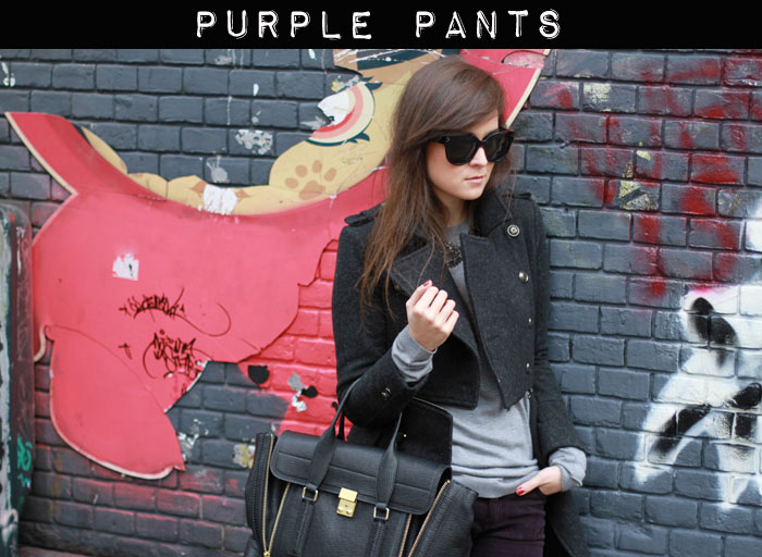 Purple pants on you ROCK!!! i cant believe you have only worn that coat 3 times its such a winner! xx A Fox That Meows ♥