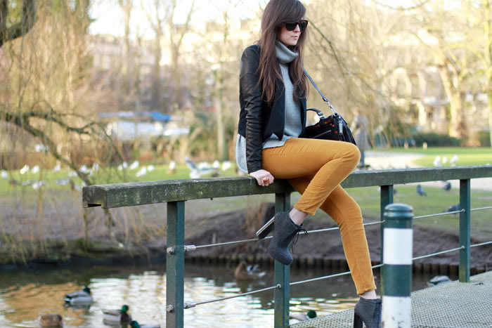 Great colour in your trousers! I wore a similar one a few days ago in a more springy fashion… Glad to see them look like winter clothes!xx,L.