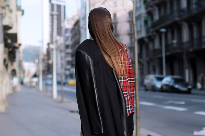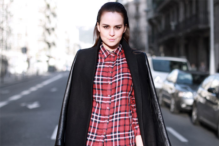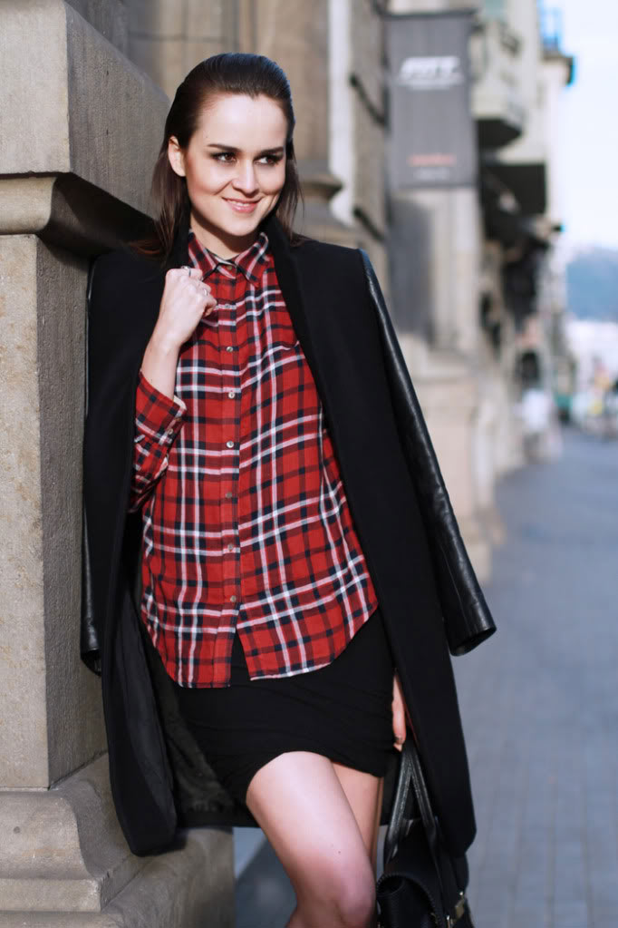 long plaid shirt with a simple black mini and that hairstyle is hot!! you look so different on the streets. in-fact the simplicity, your height (wow!) and that hairstyle makes it look stunning :)PS. I like your eyeshadowing technique. it gives a good depth to the face shape :)Style Hostess