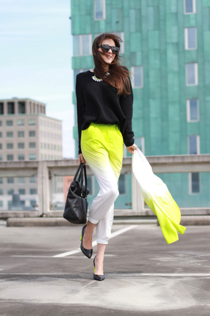 10. This look is awesome. I wish you had a side view of the heels, looks like they have neon on them too! Love. And if you're getting stares, that means you're doing something right to turn some heads :) xoxohttp://www.thewrittenrunway.com