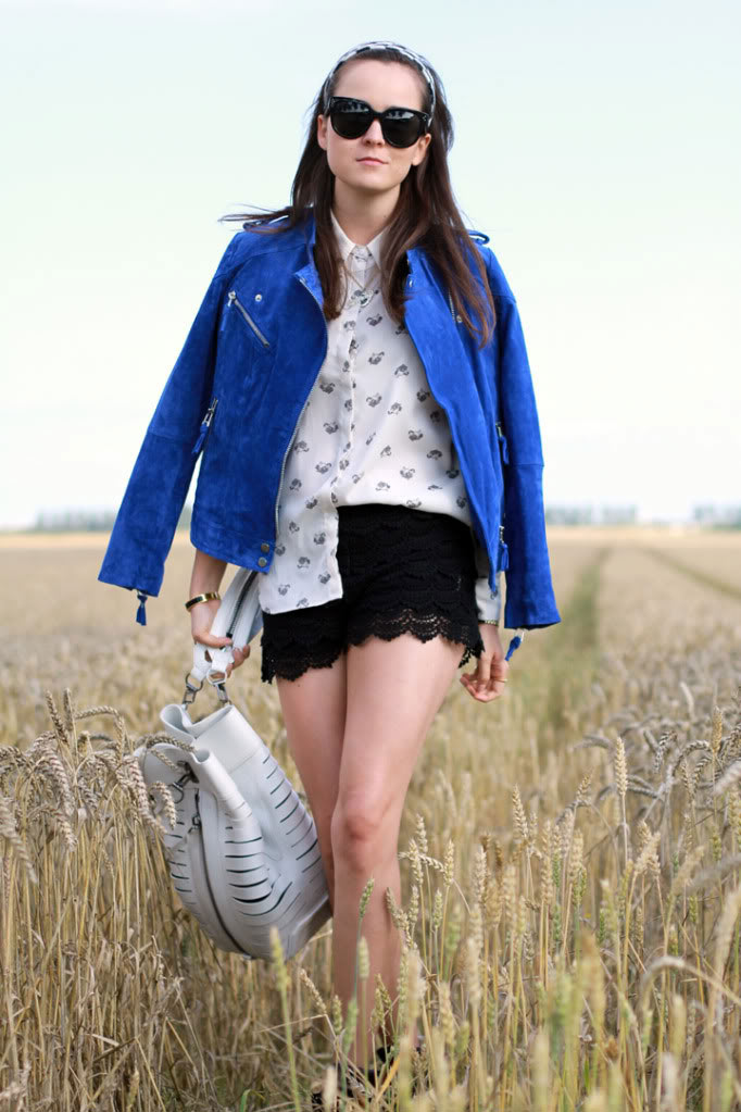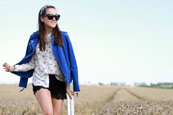 3. I love your electric blue jacket. It makes your whole look pop and is a good edgy mix with lace shorts.xoxohttp://www.thewrittenrunway.com