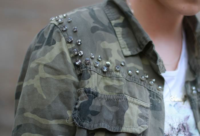 That jacket is so stunning, I love the contrast of camouflage and diamonds :)