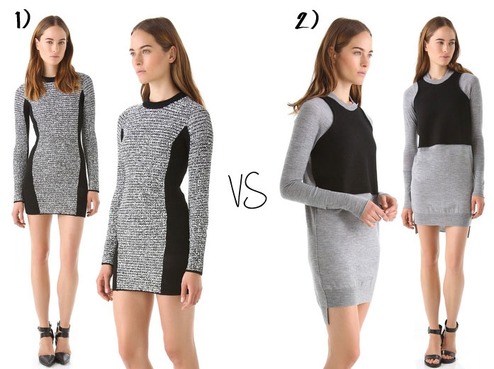 You can find similar dresses to the number 1 for sure, but the number 2 is more uncommon and different than other dresses and a lot more Wang than the number 1.