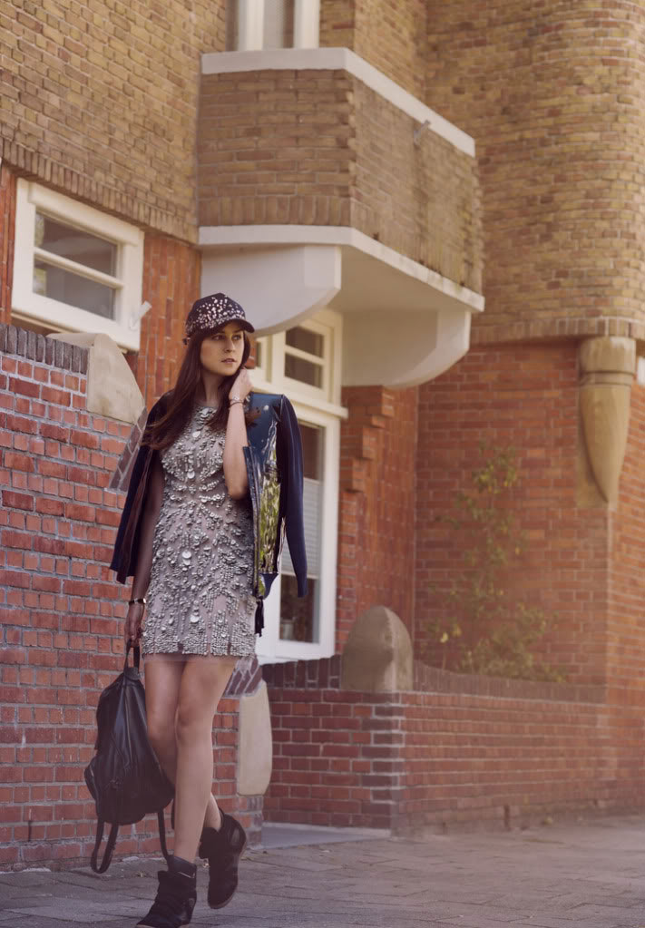 Love the look with the embellished cap! Where is that dress from? xxwww.worldofafashionjunkie.blogspot.com
