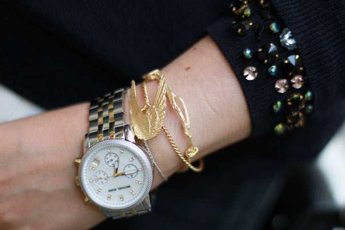 Pants: River Island / Boots: Alexander Wang / Sweater: H&M Trend / Wings bracelet: Flashy Era / Golden Twig Ring: Michelle Oh / Golden Branches bracelet: Linda Friedrich / Melting ring: Jung ee eun / Braided ring: Ayako Kanari