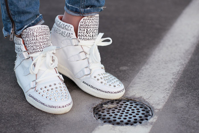 These Albatorock by Sandro sneakers are special, since they were customized for me by the street artist and illustrator Mathieu Julien. If you happen to be in Paris on the 20th and 21st of October, Sandro is opening an Albatorock pop up store at 50 rue Vieille du Temple, where 5 of the top street artist in Paris will be customizing the sneakers :)