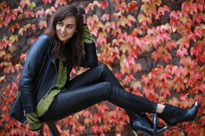 Me gustan mucho estas nuevas fotos Andy, además los lugares que elegís me parecen estupendos, este por ejemplo con las hojas es precioso. Además de tu look: amo esa chaqueta biker <3Andrea in Fashion