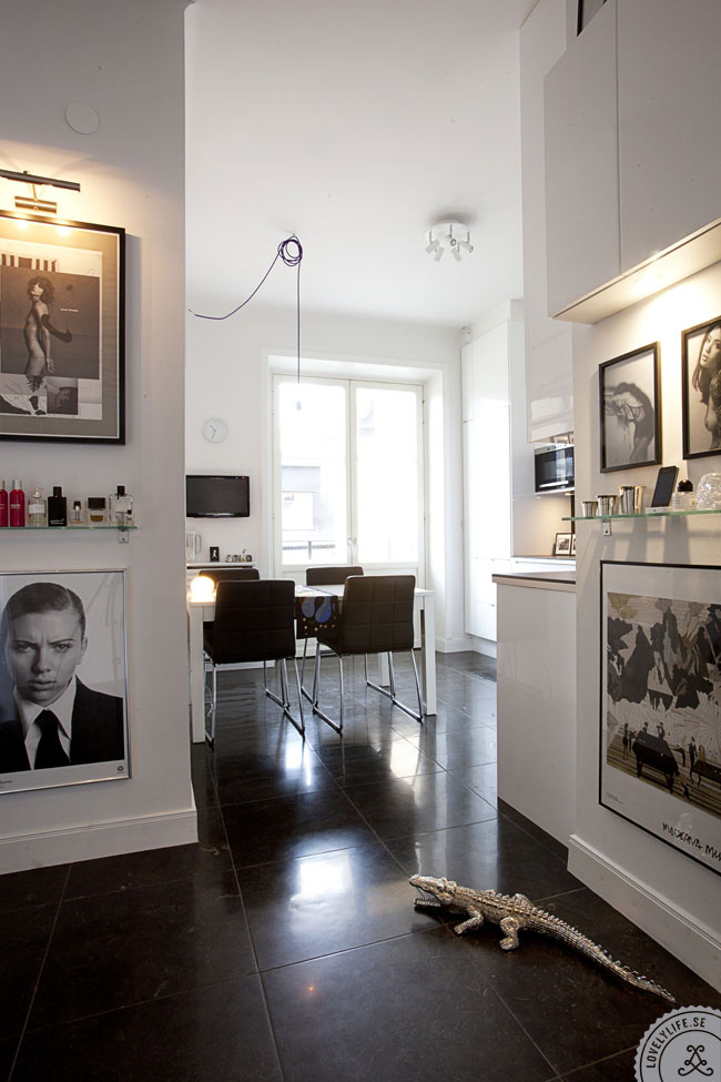 OMG! I think i fell in love with this apartament! It's co stylish and it seems so spacious. I love the white walls with black and white photos♥