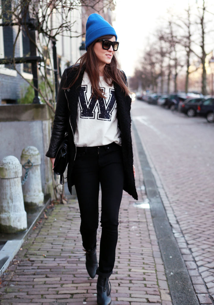 love the b/w look with the blue accent on the beanie! xo, Almahttp://www.soulofashopper.com