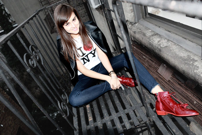 The I <3 New York shirt is a classic! I always wear mine as a t-shirt under a blazer or jacket with jeans. It's easy and fun. Love the outfit!xxhttp://hotchildinchicity.blogspot.com/