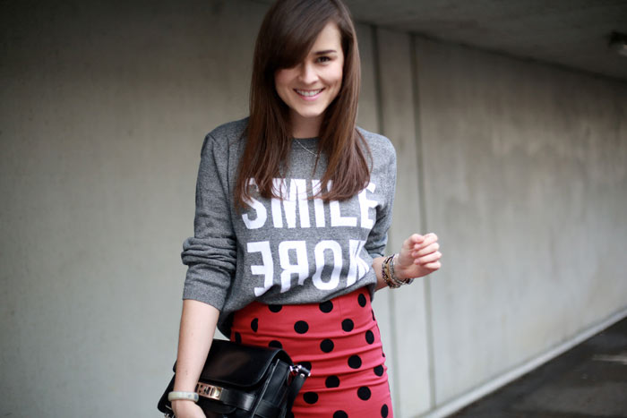 Beautiful this polka-dot pencil skirt, Andy!Smiling is the best medicine :)Kiss,Liliana from Um Blog Fashion