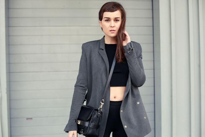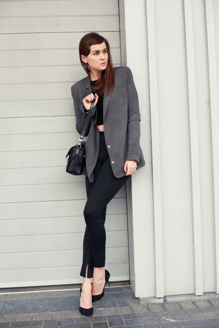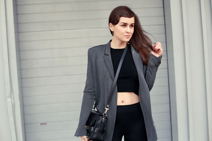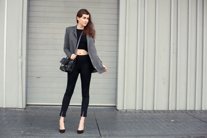 I love the black outfit with this beautiful grey blazer, and you should wear more crop top! http://www.laurablogmode.com