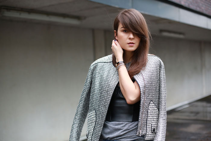 darling, you look beautiful and you know I love you and your styling. But I absolutely don't like that leather corset above your shirt :(BUT, the jacket is to die for!http://www.thefashionfraction.comhttp://www.thefashionfraction.com