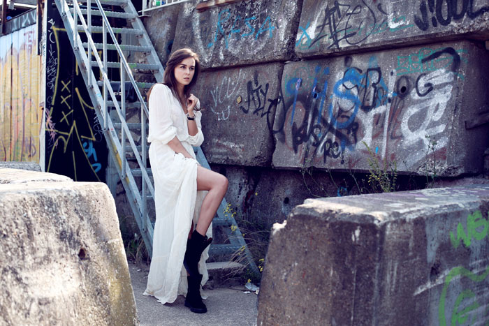 I am looking for some maxi dress for some time, but still did not find the right one for me (I guess it is also because I am small and all the maxi dresses are super maxi on me). This white Mango dress looks nice and I like the combination of romantic piece with something more contrasting. You look lovely on it and I have to say I envy your beautiful legs :)