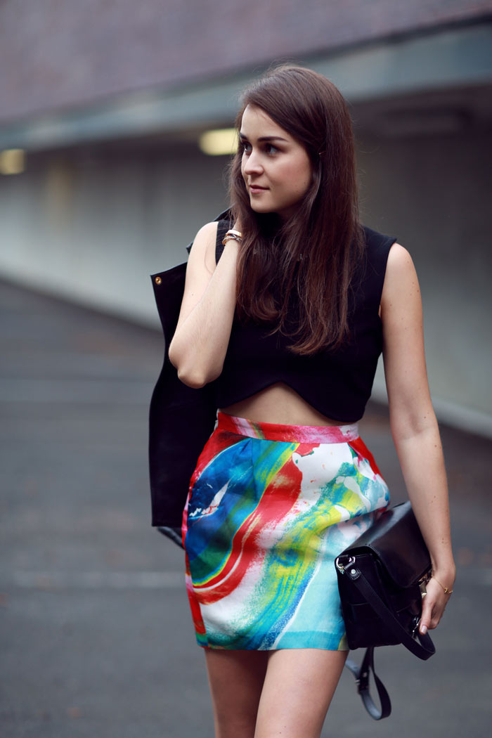 2. Que bonita falda Andy, los colores son muy divertidos, me gusta mucho como le diste tu sello personal al contrastarla con negro, eso hace que el color resalte más y a al vez luzca mucho más edgy, el top con corte asimétrico es lo más!