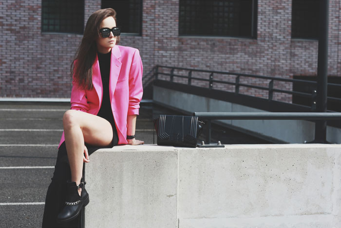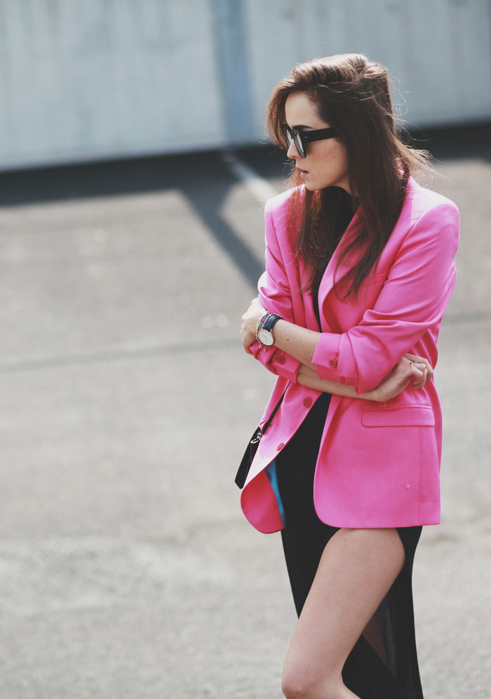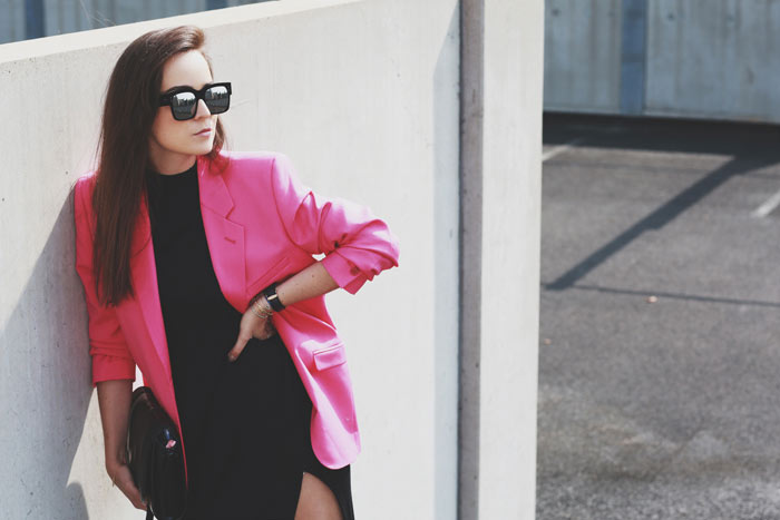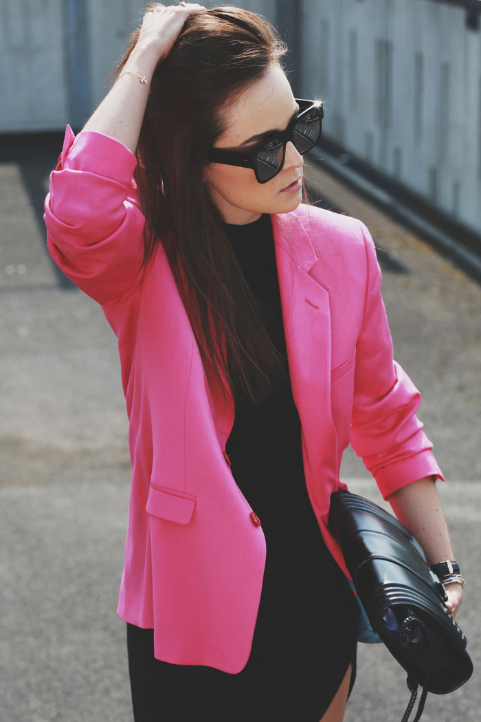 Blazer: Versace for H&M Men  |  Dress: Stylein  |  Boots: Sandro  |  Sunglasses: Thierry Lasry for ACNE  |  Bag: ZARA