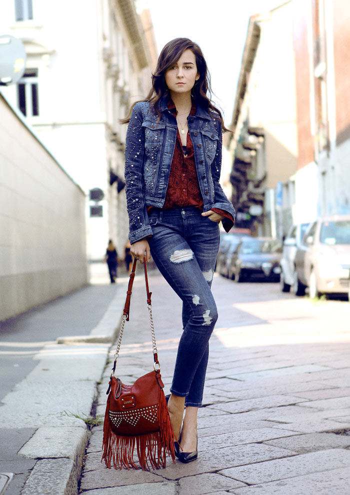 Love the denim on denim with the burgundy! x