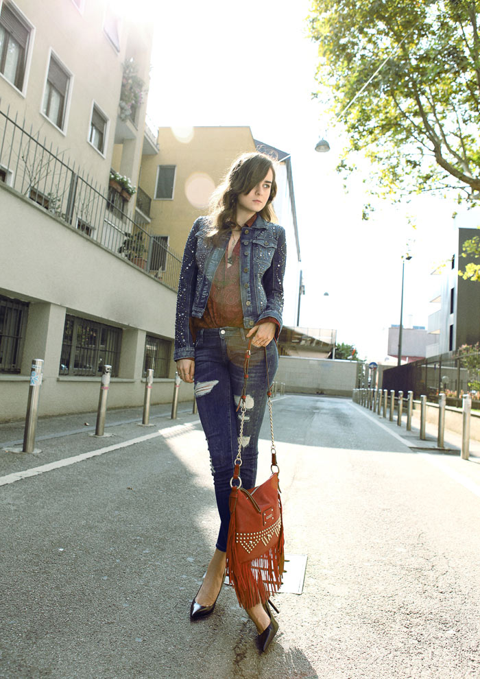 my god! this is gorgeous denim! love the bag and shirt too