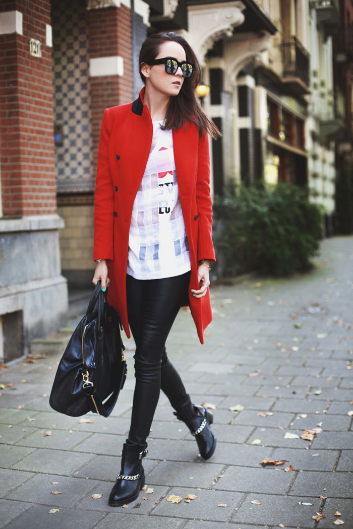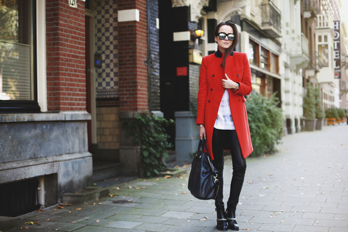 You look gorgeous. I’m in love with your trousers and the coat is beautiful. I would say it’s red.