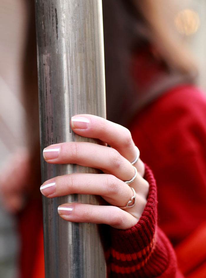 Ces bagues sont magnifiques les ongles sont superbes le pull rouge est hyper jolie