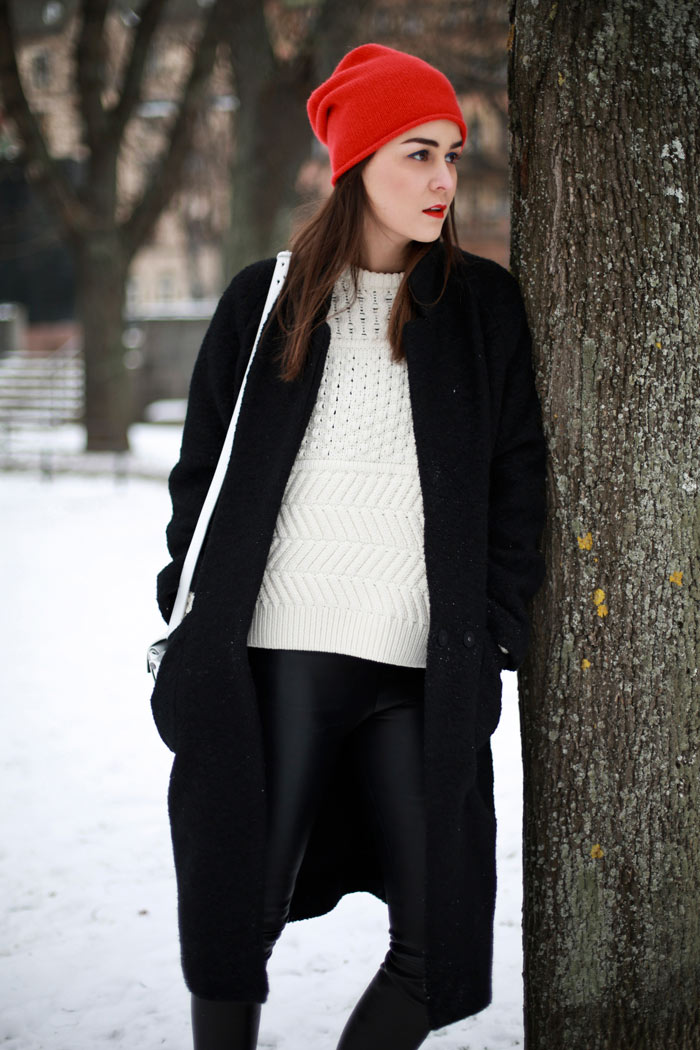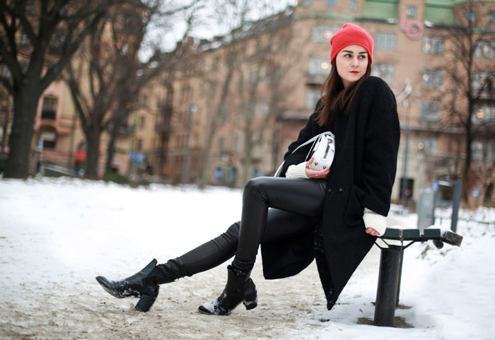 STSC7961 STSC7874 STSC8016 STSC7922 STSC7997 STSC7947 STSC7858Leather pants: Jose Sanchez  |  Bag: Alexander Wang  |  Boots: ZARA  |  Sweater: & Other Stories  |  Coat: Ganni  |  Beanie: COS  |  Lipstick: NARS