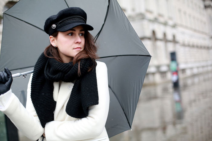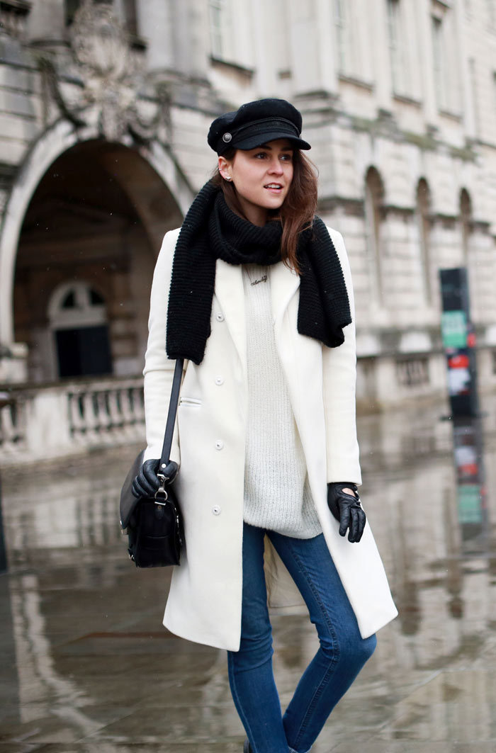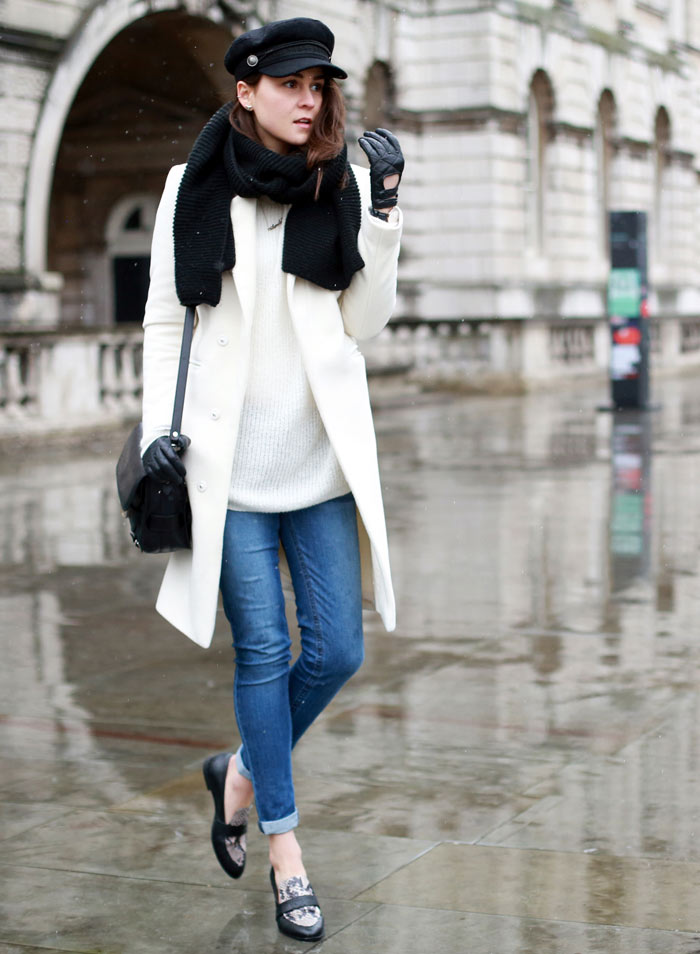 Gorgeous white coat, it looks fabulous with your hat!