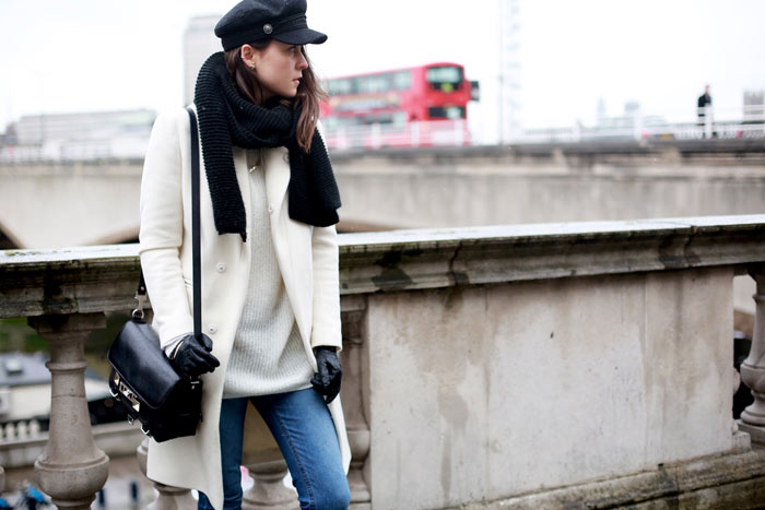 Coat: Designers Remix | Jeans: DL1961 | Sweater & Shoes: MANGO | Cap: H&M | Bag: Proenza Schouler