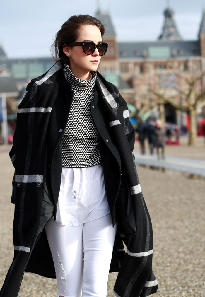 I like the combination of two different patterns in one outfit. Black and white makes it all put together.