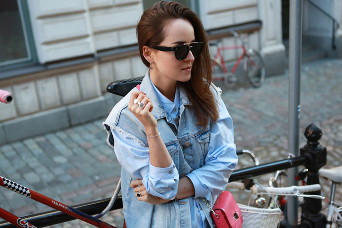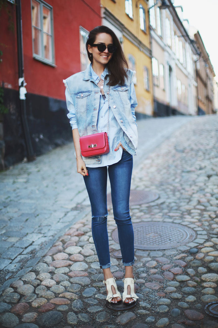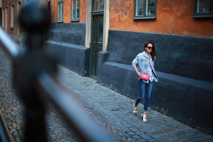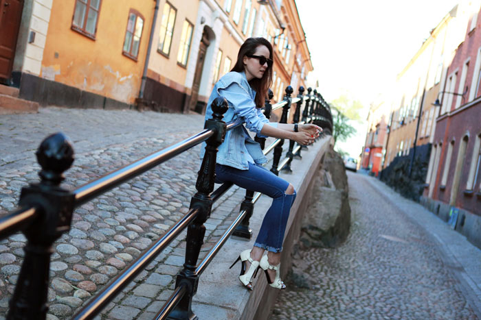 When I arrived to Stockholm on Wednesday I was very surprised and had one of those: “Oh shit!” moments….More than Summer, it feels like Autumn, damn its really cold, I mean even shooting these images was a bit of a struggle and had to run for a jacket straight after. 11 degrees in the middle of Summer is not exactly what I was expecting nor what I packed for, which means I had to get extremely creative with the little covering clothes I brought. I packed a pair of black and denim jeans, thats all, everything else was skirts, dresses and shorts. I feel like a freaking portrait walking around places, good thing is, I am literally in the middle of nowhere so wearing the same look over and over again is not really that much of a problem but still, I really really dislike it. Lets see in how many ways I can style this jeans without making it look the exact same way. Being away of your comfort zone can be great at times though, Keeping positive by thinking this way…