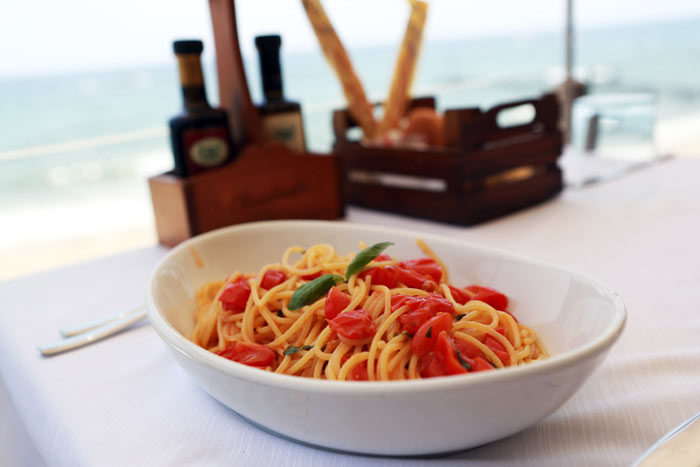 Being here wasnt only about relaxing by the beach, I did spend a chunk of my time eating, a lot! Maybe thats why I was trying my hardest to wake up early for a gym workout, so I didn’t waste my day in there, the morning didn’t matter and it just helped me work on my appetite. One of my favorite experiences was eating at the Gordon Ramsay restaurant at Forte Village by the sea, while the sunset was going down. I guess I was secretly hoping he could have been in the kitchen cursing and working his magic -Gordon Ramsay that is-, but of course the chef did make me go woahhh with the food we got served. Once again I realized how much I enjoy eating and how I -a million times over- prefer to have a very busy fitness lifestyle, than not allowing myself to eat the things I love.