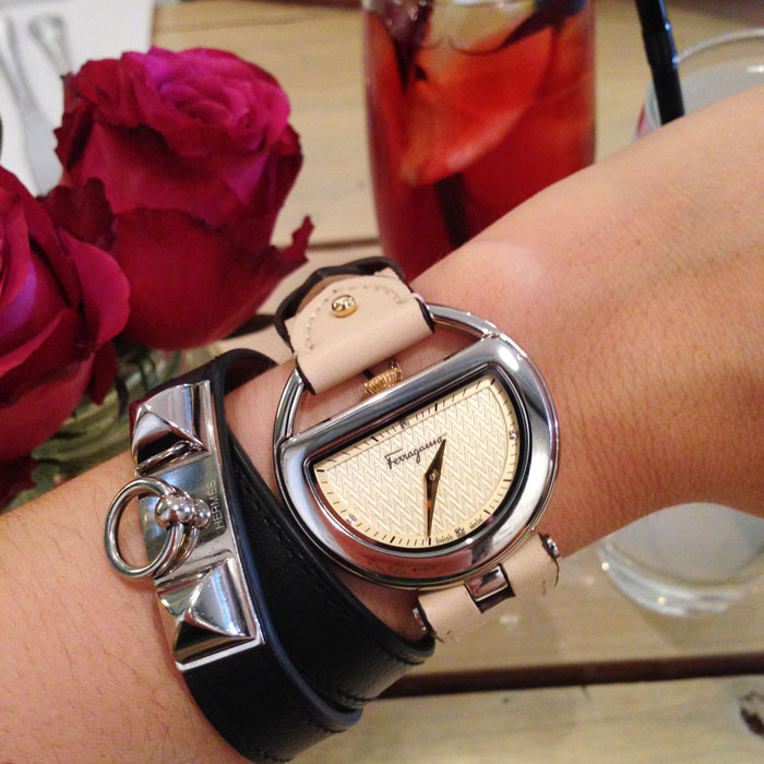 These pieces from the Ferragamo Buckle collection have now traveled with me to a few countries in only a matter of 2 weeks and I have worn them in quite different ways . I took the Sunglasses and watch with me to Sardinia in Italy, Barcelona, Amsterdam, now Paris and I am starting to grow a special bond with them, specially the watch. I want to have a piece like my grandfathers, the one that one day, will be coveted by my kids and grand kids. If you know what I mean…